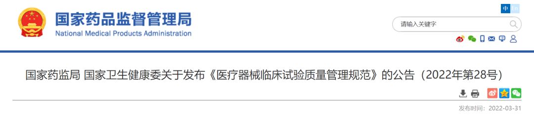 為深化醫(yī)療器械審評審批制度改革,加強醫(yī)療器械臨床試驗管理,根據(jù)《醫(yī)療器械監(jiān)督管理條例》(國務(wù)院令第739號)及《醫(yī)療器械注冊與備案管理辦法》(市場監(jiān)管總局令第47號)、《體外診斷試劑注冊與備案管理辦法》(市場監(jiān)管總局令第48號),國家藥品監(jiān)督管理局會同國家衛(wèi)生健康委員會組織修訂了《醫(yī)療器械臨床試驗質(zhì)量管理規(guī)范》,現(xiàn)予發(fā)布,自2022年5月1日起施行。