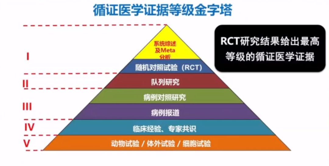 李衛(wèi)教授表示,根據循證醫(yī)學證據級別金字塔中最高等級的I級證據顯示,基于良好設計的隨機對照試驗(randomized controlled trial,RCT)最能夠評價器械的安全性和有效性。
