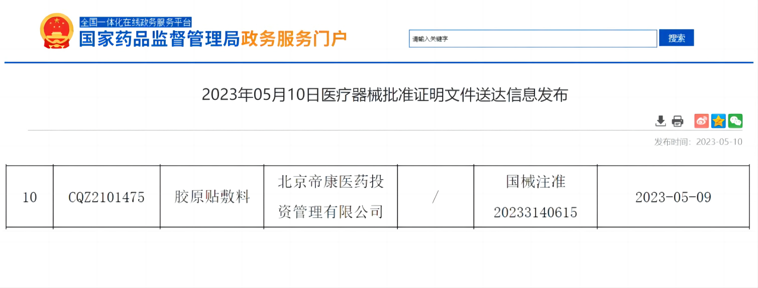 MA成果發(fā)布_2023年5月9日,奧泰康北京CDMO中心取得「首張」國家藥監(jiān)局批準的三類醫(yī)療器械注冊證2023年5月9日,奧泰康北京CDMO中心取得「首張」國家藥監(jiān)局批準的三類醫(yī)療器械注冊證(國械注準20233140615),系全國首個以細胞外基質(zhì)來源的膠原蛋白為原料制備的三類膠原貼敷料。此項目是北京CDMO中心基于“十三五”國家重點研發(fā)計劃項目,在MAH制度下,與湖北恒安芙林藥業(yè)股份有限公司戰(zhàn)略合作完成涵蓋市場準入全流程業(yè)務(wù)的醫(yī)美類項目,也是器械CRO/CDMO行業(yè)受托研發(fā)誕生的全國首個三類醫(yī)療器械注冊證,具有里程碑意義。
