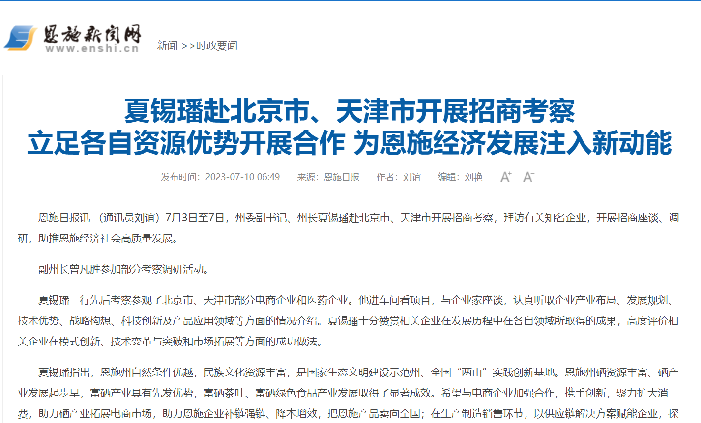 7月,恩施州州委副書記、州長(zhǎng)夏錫璠,副州長(zhǎng)曾凡勝,州政府秘書長(zhǎng)程飛一行蒞臨奧泰康北京總部考察調(diào)研,奧泰康期待借助自身CRO在醫(yī)藥科技成果轉(zhuǎn)化方面的豐富經(jīng)驗(yàn)與優(yōu)勢(shì),助力恩施州傳統(tǒng)中醫(yī)藥和硒產(chǎn)品的新藥科技成果轉(zhuǎn)化,實(shí)現(xiàn)優(yōu)勢(shì)互補(bǔ)、資源共享、共同推動(dòng)生物醫(yī)藥行業(yè)高質(zhì)量發(fā)展。