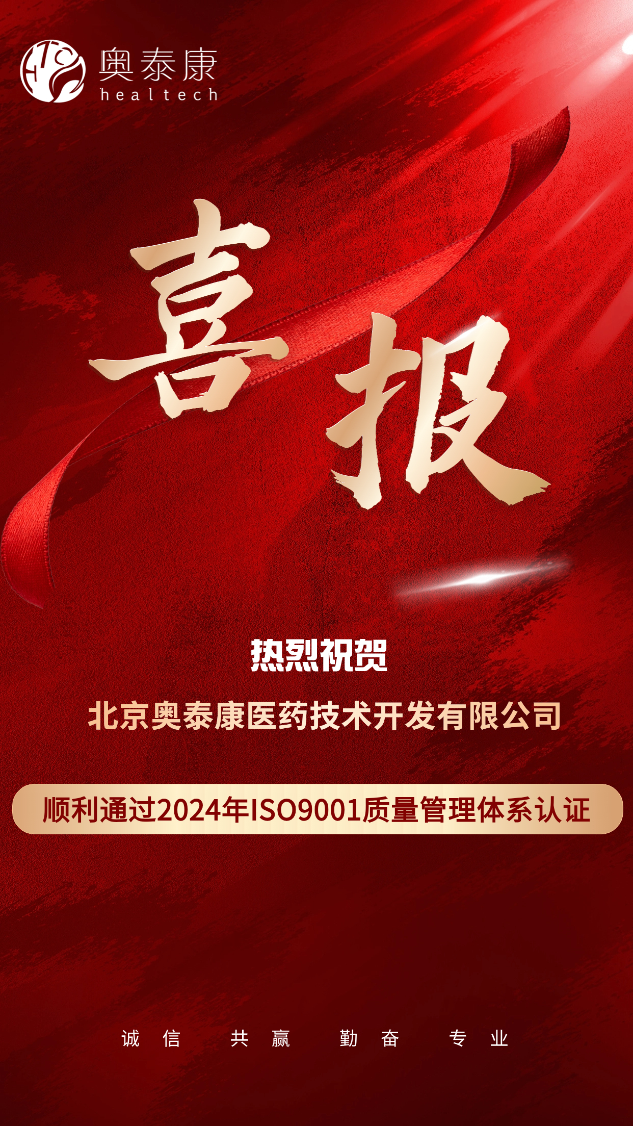 奧泰康通過2024年ISO9001質(zhì)量管理體系年審認(rèn)證,我們將持續(xù)推進(jìn)質(zhì)量建設(shè),提升綜合實(shí)力,保證在研臨床項(xiàng)目高質(zhì)量、高效率運(yùn)行