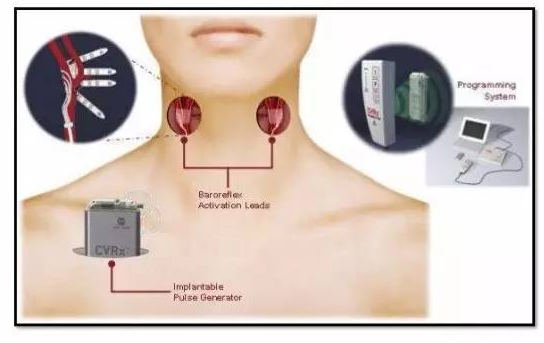 壓力感受器是位于頸動脈竇和主動脈弓中的解剖結構,壓力感受激活療法 是一種治療心力衰竭的創(chuàng)新性電療法,裝置由植入式脈沖發(fā)生器和頸動脈竇電極組成,通過電刺激頸動脈壁的壓力感受器來調節(jié)自主神經系統(tǒng),可以同時增加迷走神經活性并降低交感神經活性,從而改善心力衰竭患者心功能和臨床預后。