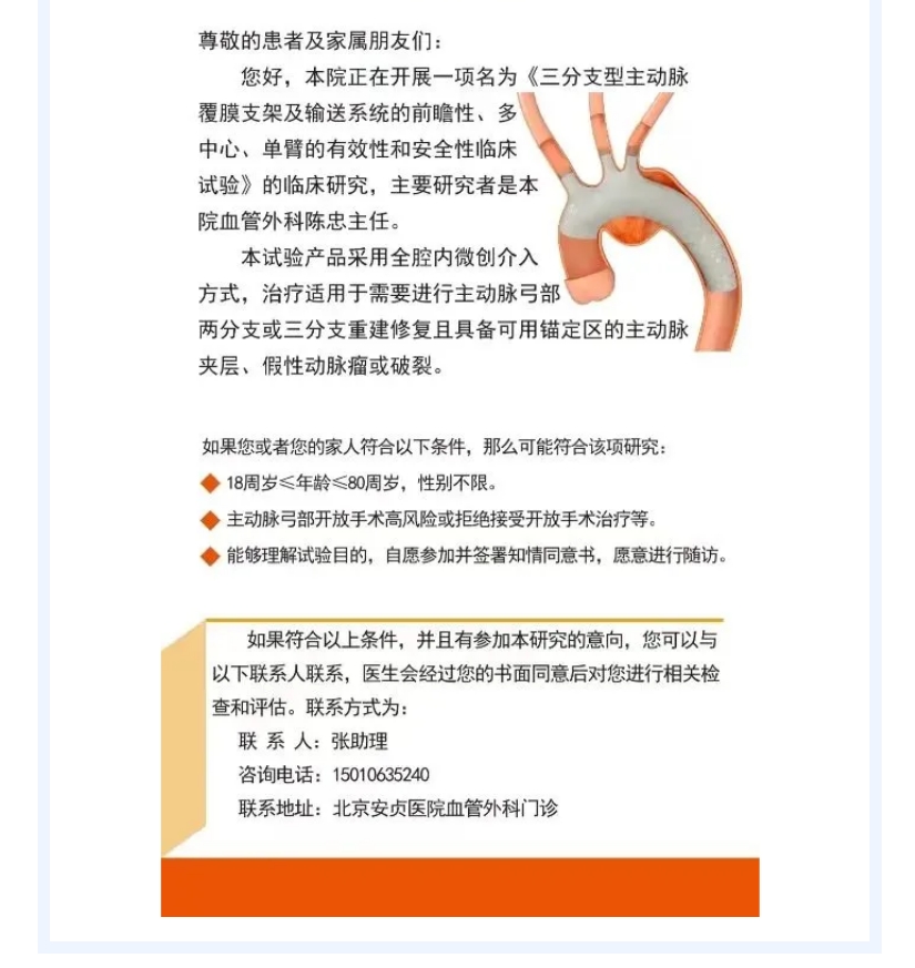 近期,由北京天助瑞暢醫(yī)療自主研發(fā)且具有完全自主知識產(chǎn)權(quán)的三分支型主動脈覆膜支架及輸送系統(tǒng)FIM臨床試驗,由首都醫(yī)科大學(xué)附屬北京安貞醫(yī)院成功完成全球首例受試者入組,奧泰康負(fù)責(zé)臨床試驗服務(wù)。