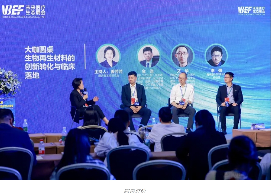 隨后,科技部“973計(jì)劃”與重點(diǎn)項(xiàng)目首席科學(xué)家、長江學(xué)者特聘教授、國家杰出青年基金獲得者、空軍軍醫(yī)大學(xué)組織工程研發(fā)中心創(chuàng)始人金巖教授;四川大學(xué)國家生物醫(yī)學(xué)材料工程技術(shù)研究中心教授、國際生物材料科學(xué)與工程聯(lián)合會(huì)Fellow艾華教授;奧泰康SFM事業(yè)部總經(jīng)理李強(qiáng)先生以及道遠(yuǎn)資本投資總監(jiān)姜芳芳共同圍繞《生物再生材料的創(chuàng)新轉(zhuǎn)化與臨床落地》這一主題進(jìn)行了分享與探討。