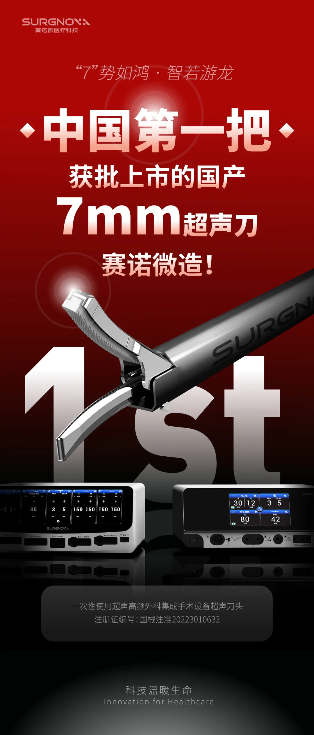 近日,賽諾微醫(yī)療科技自主研發(fā)的一次性使用超聲高頻外科集成手術(shù)設(shè)備超聲刀頭產(chǎn)品獲得NMPA批準(zhǔn)上市,系中國(guó)第一把獲批上市的國(guó)產(chǎn)7mm超聲刀,奧泰康參與臨床服務(wù)。