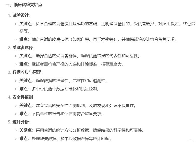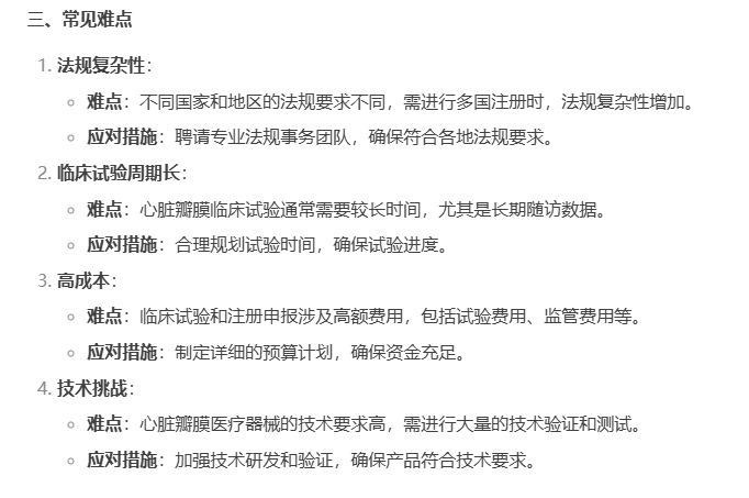 然而,每一項創(chuàng)新技術的臨床應用,都離不開嚴謹?shù)呐R床試驗驗證。心臟瓣膜醫(yī)療器械的臨床試驗和注冊申報是一個復雜且嚴格的過程,其中涉及的多個關鍵環(huán)節(jié)和潛在難點,關于這些,看看當下最熱門 AI工具deepseek怎么說吧~