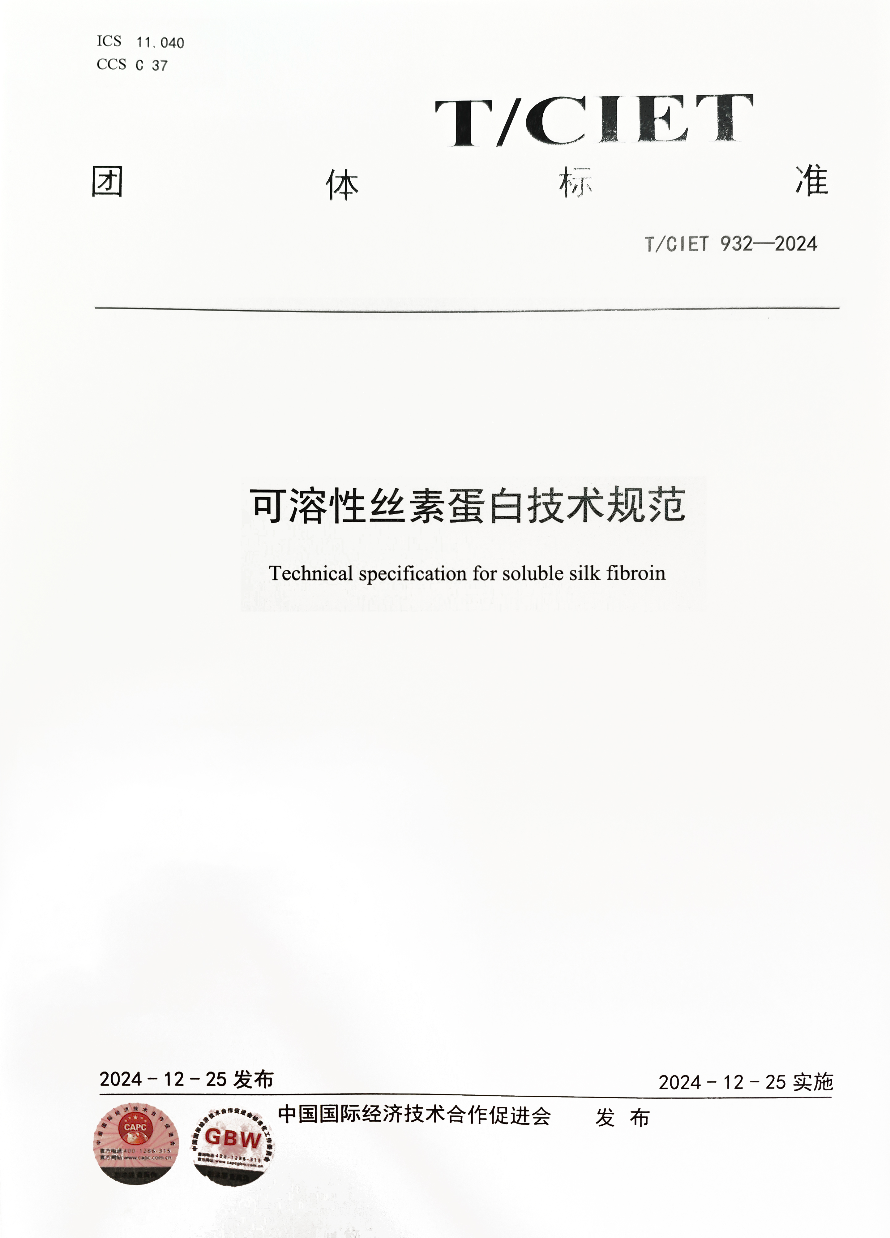參與團(tuán)標(biāo)制定,引領(lǐng)行業(yè)標(biāo)準(zhǔn)——推動(dòng)行業(yè)向規(guī)范化、高質(zhì)量發(fā)展邁進(jìn)近日,由奧泰康蘇州CDMO中心(蘇州蘇豪生物材料科技有限公司)參與起草的《可溶性絲素蛋白技術(shù)規(guī)范》(T/CIET 932-2024)團(tuán)體標(biāo)準(zhǔn)正式由中國國際經(jīng)濟(jì)促進(jìn)會(huì)發(fā)布并實(shí)施。這一標(biāo)準(zhǔn)的制定填補(bǔ)了國內(nèi)可溶性絲素蛋白領(lǐng)域技術(shù)標(biāo)準(zhǔn)的空白,為行業(yè)高質(zhì)量發(fā)展提供了權(quán)威依據(jù)。